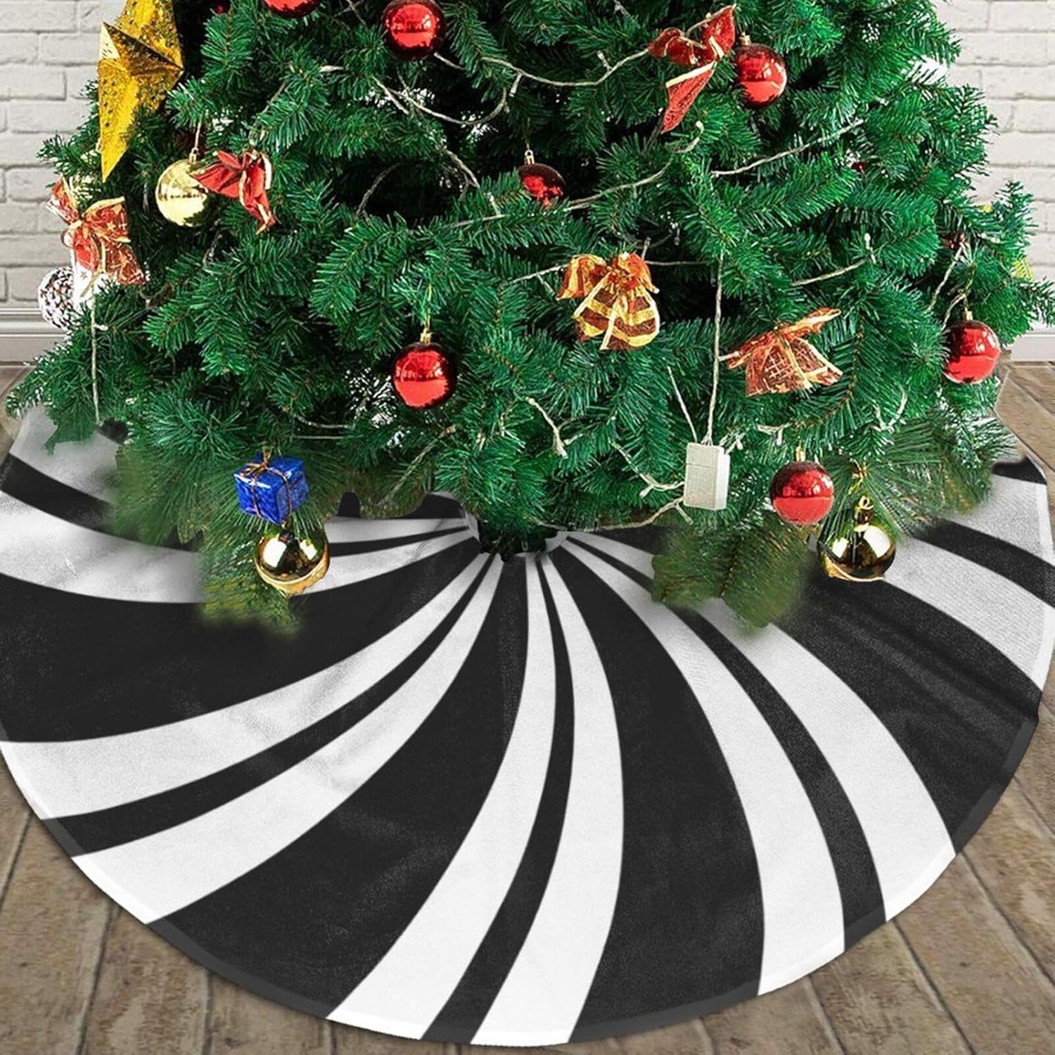 - Blending Classic with Innovation: Our Christmas tree skirt features a distinctive Mint Sugar Double Swirl Candy black pattern, merging traditional charm with a touch of modern elegance. This skirt promises to be a standout piece in your Christmas decor, setting a warm and romantic festive ambiance for your home. Don't miss out on this exquisite addition to your holiday season!