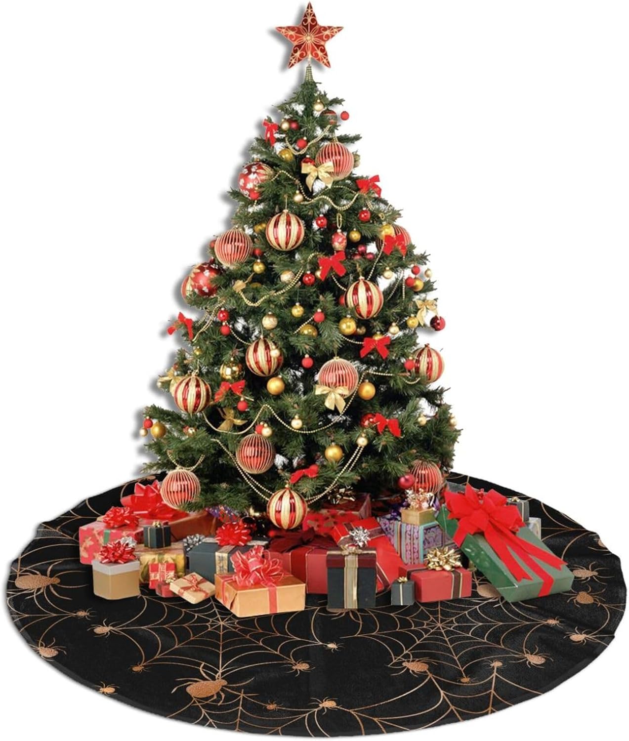 - Blending Classic with Innovation: Our Christmas tree skirt features a distinctive Gold Spider Web pattern, merging traditional charm with a touch of modern elegance. This skirt promises to be a standout piece in your Christmas decor, setting a warm and romantic festive ambiance for your home. Don't miss out on this exquisite addition to your holiday season!