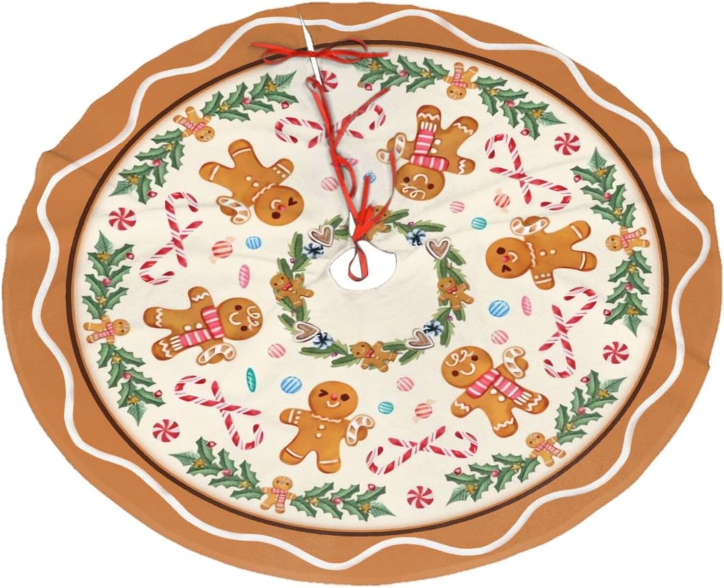 Christmas Tree Skirt,Gingerbread Xmas Tree Skirt Rustic Farmhouse Tree Skirt for Christmas Decor Xmas Holiday Home Party Decorations48