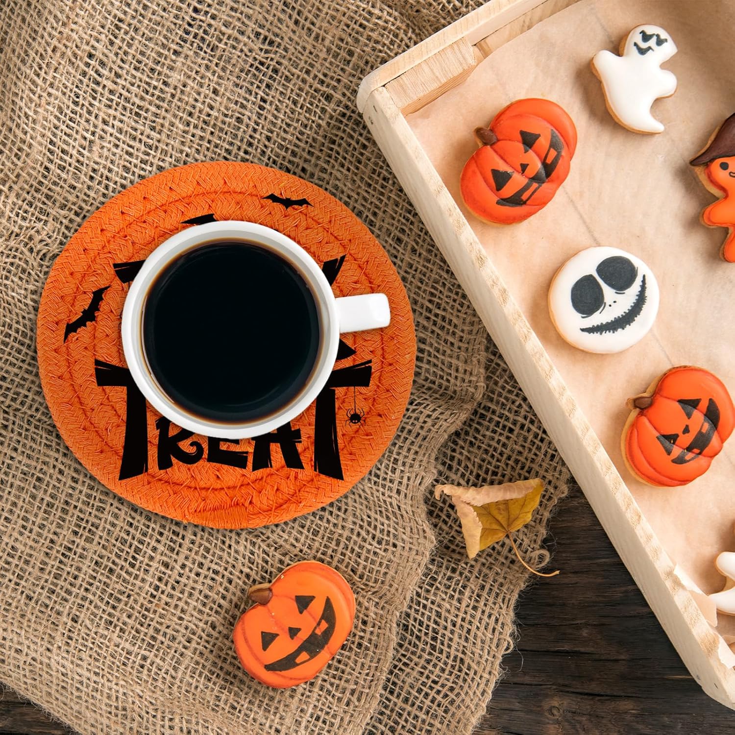 - Halloween Theme: Our cotton coasters are designed with pumpkin, bats and the words of ‘HAPPY HALLOWEEN’ and ‘TRICK OR TREAT’, mainly colored in black and orange, classic and delicate, will nicely increase festive atmosphere