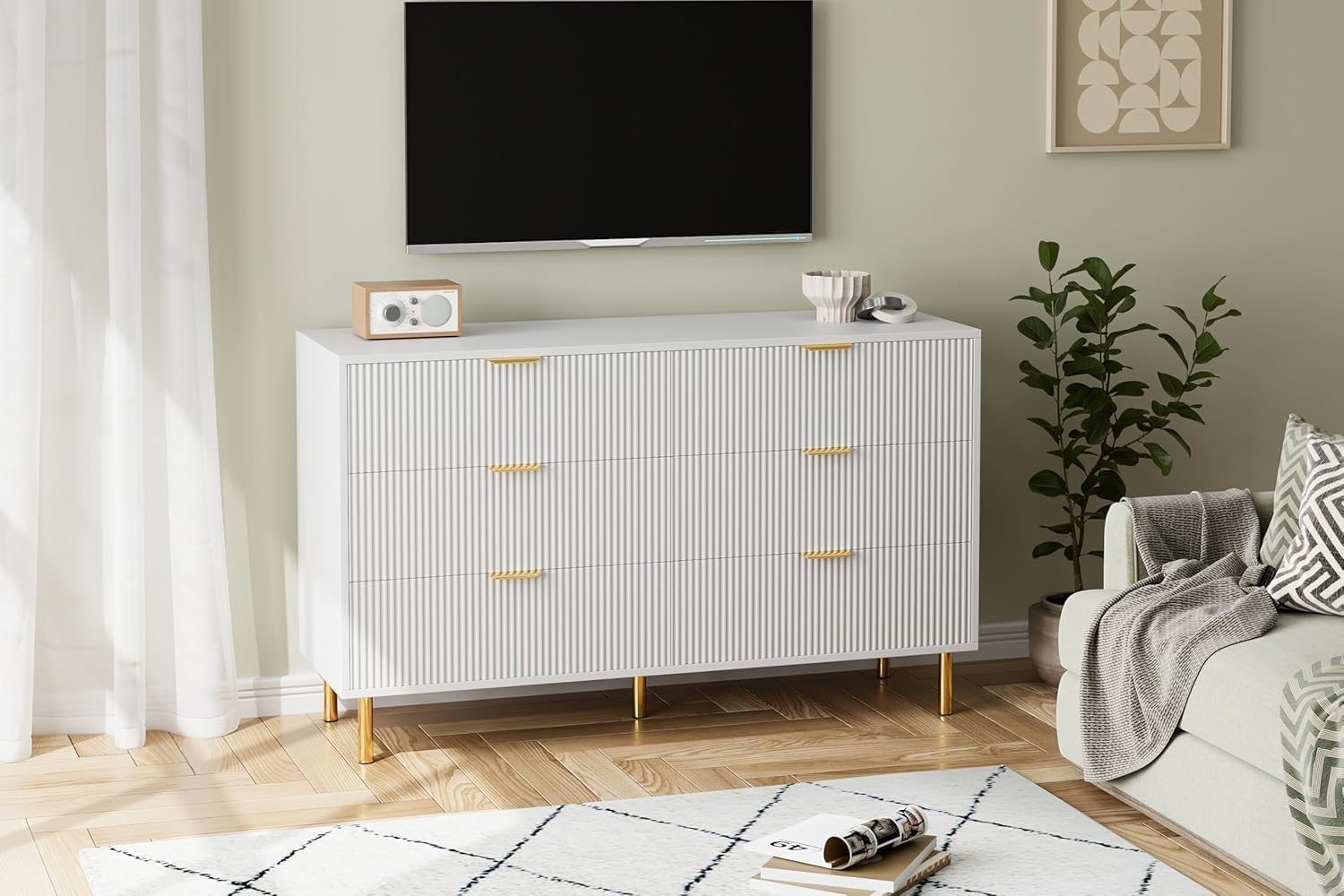 GAOMON 6 Drawer Dresser, Wood Chest of Drawers Organizer Storage with Gold Handle, Large Storage Cabinet, Modern Design Dresser for Bedroom, Living Room, Closet, Hallway, Entryway, White