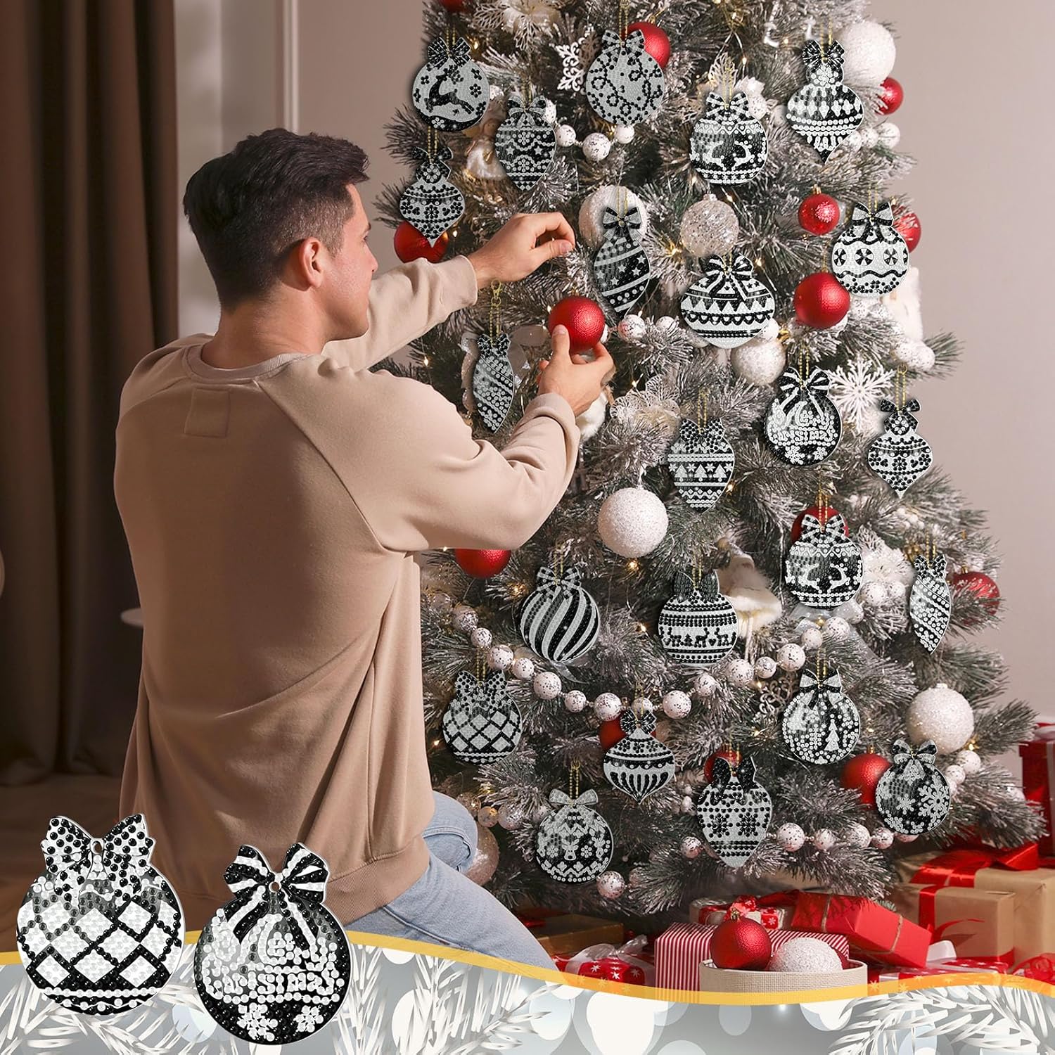 - Package Including: our package contains 20 Christmas black and white balls diamond painting keychains with tools, which are suitable for those who like DIY; Plenty to use for multiple projects or share with friends and family for a fun Christmas break together