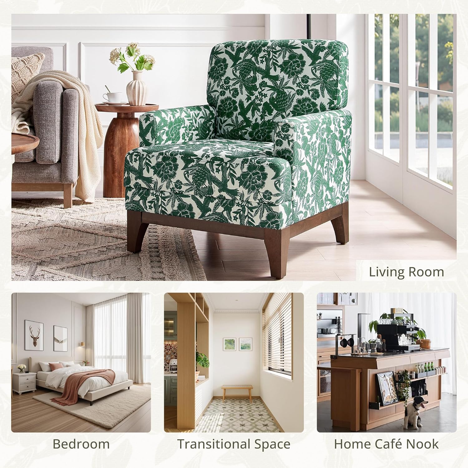 - Sturdy Wooden Frame with Floor Protection——Floral armchair is constructed with a combination of solid wood and engineered wood, providing a stable and durable structure that supports up to 275 lbs. Reinforced construction enhances longevity, while rubber pads on the legs help prevent scratches and damage to flooring surfaces.