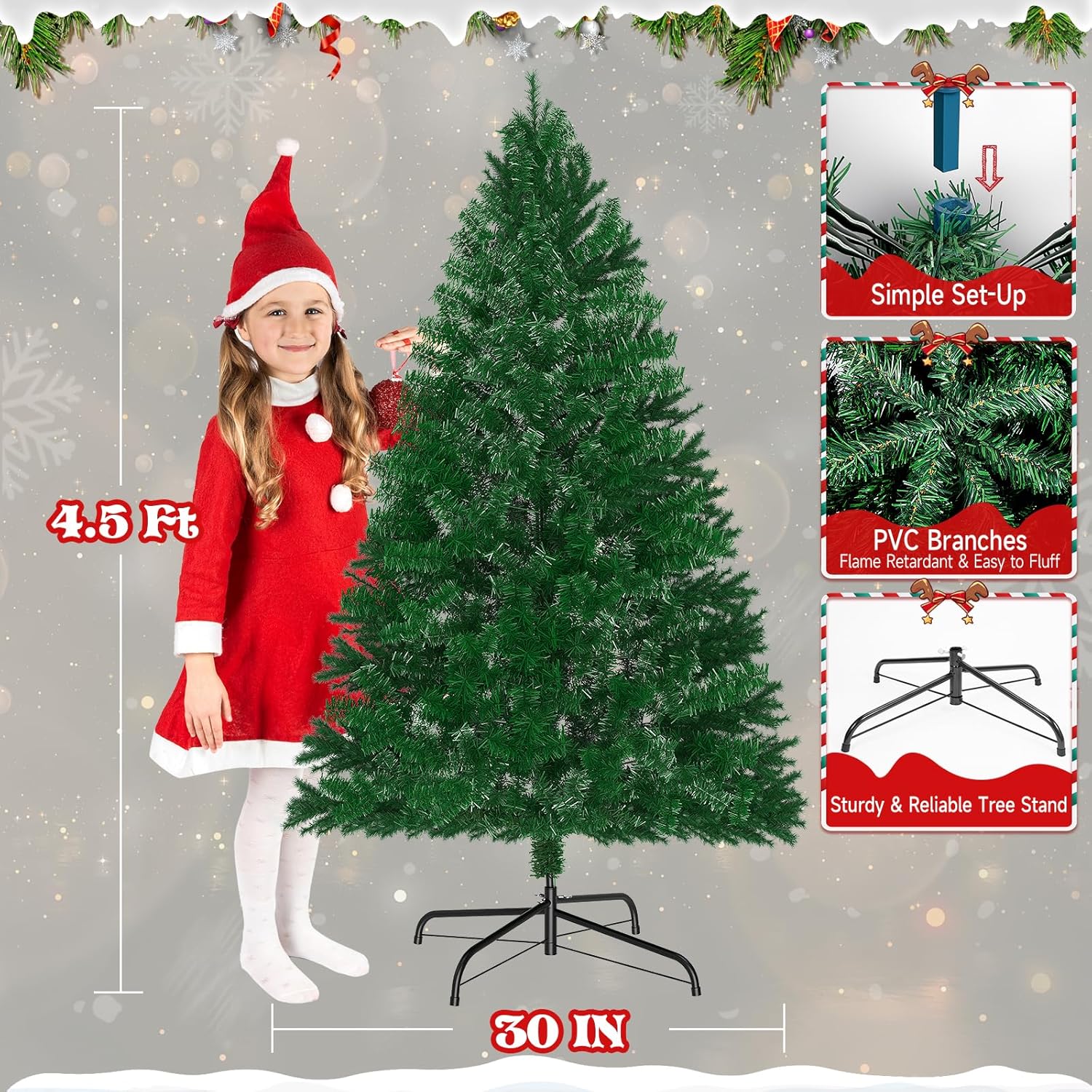 LEVELEVE Premium 4.5FT Artificial Holiday Christmas Tree w/350 Branch Tips,250 LED Lights for Home,Office,Party Decoration