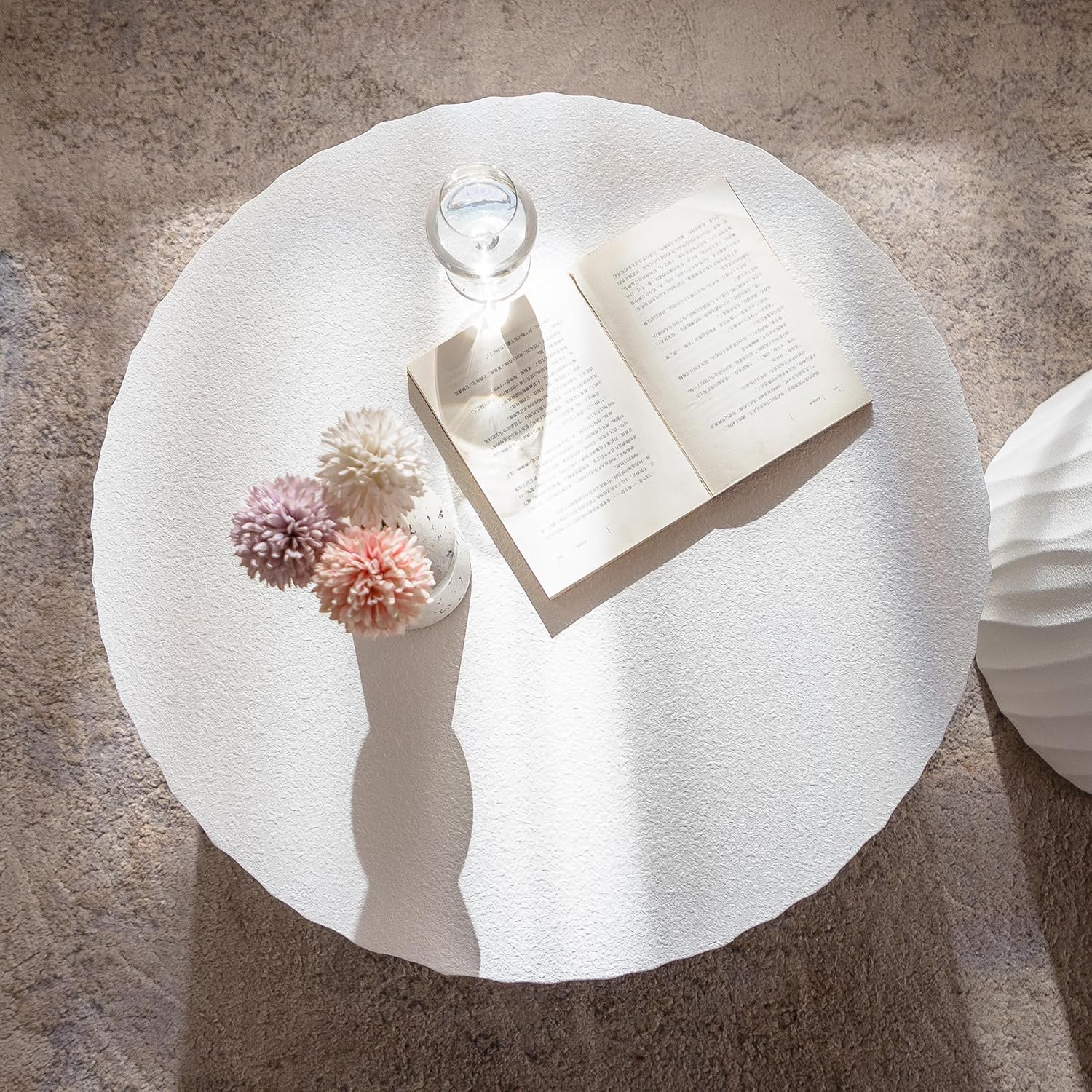 - 【Textured Surface】The tabletop features a unique granular texture, providing a tactile experience that adds depth and character. This subtle texture not only enhances its visual appeal but also creates an inviting surface that feels interesting to the touch, making it a delightful centerpiece in any room.